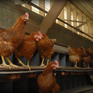 This laying hen farm meets the standards for the Humane Farm Animal Care Program, which ensures that the hens on their farm are provided with a nutritious diet without antibiotics or hormones, and are raised with shelter, resting areas, sufficient space, and the ability to engage in natural behaviors.